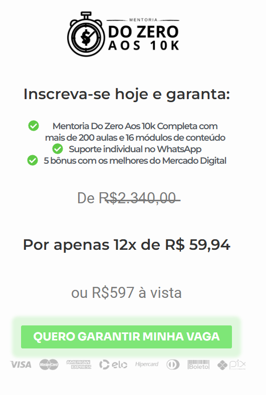 Valor promocional disponível por tempo limitado. Poucas ofertas restantes.